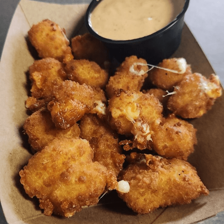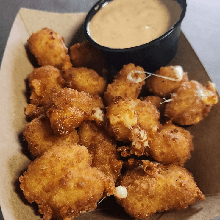 Fried Wisconsin Cheese Curds fried golden brown served with a side of our signature Brake Sauce